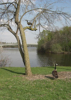 Down below the mate stood there in shock and the tree goose started calling and calling, like the mate was going to join him. It was something to see alright, and who would have guessed that this was about the only time I had a camera with me.............think he was just posing?